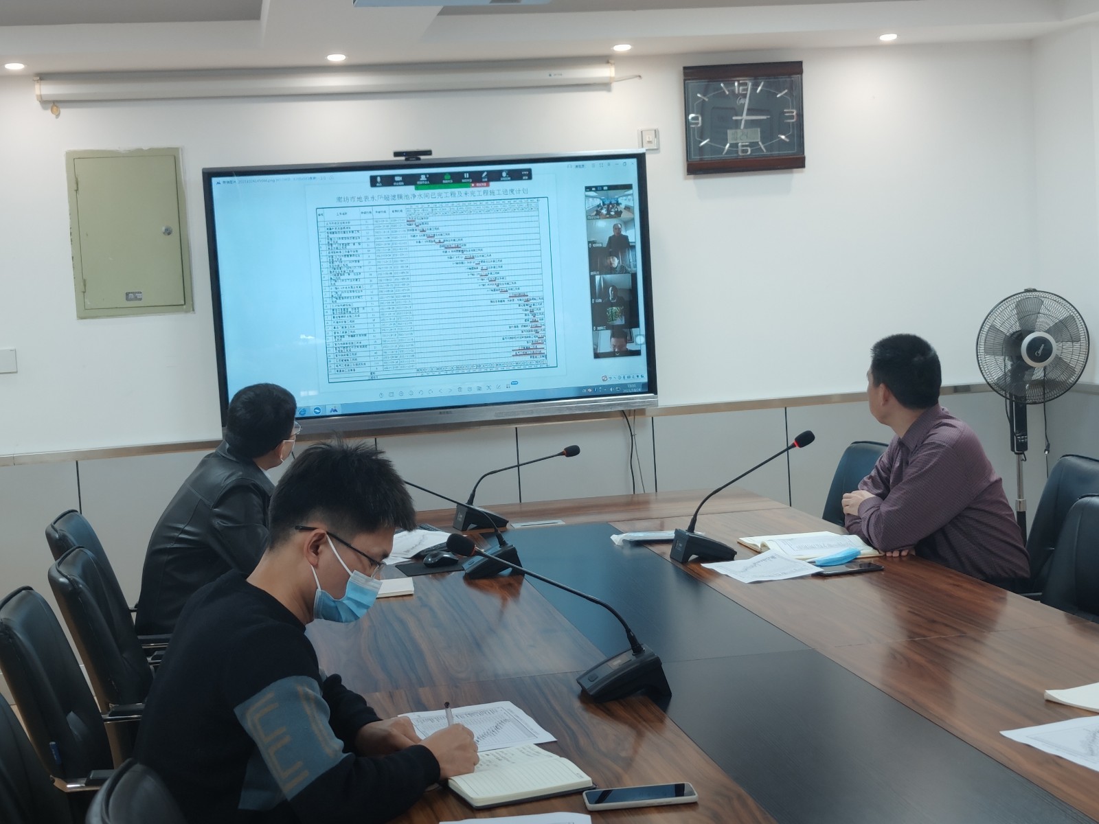 疫情影响, 10月24日下午,河北建投水务投资有限公司总经理助理、工程部部长赵凤兰带队,一行四人通过“瞩目”视频方式对四分公司承接的廊坊地表水厂超滤膜池净水间施工技术进行了研讨。分公司经理丁浩,党总支部书记张军怀等相关领导一同参加。