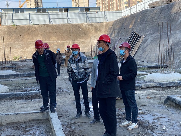 验收组一行首先进入施工现场察勘检验,经过仔细查看和询问后,对现场防水卷材搭接保护、结构混凝土实体检测、后续回填土试验参数等方面提出了具体要求,明确了验收标准。现场查勘结束后,验收组对施工管理和技术资料进行了详细检查,质监站站长杨红勋对涉及技术资料给予了肯定。最后各方一致认为5#住宅楼、B区车库AP-AL轴交7-30轴基础施工符合设计要求,施工质量合格,顺利通过验收,可进行下道工序施工。