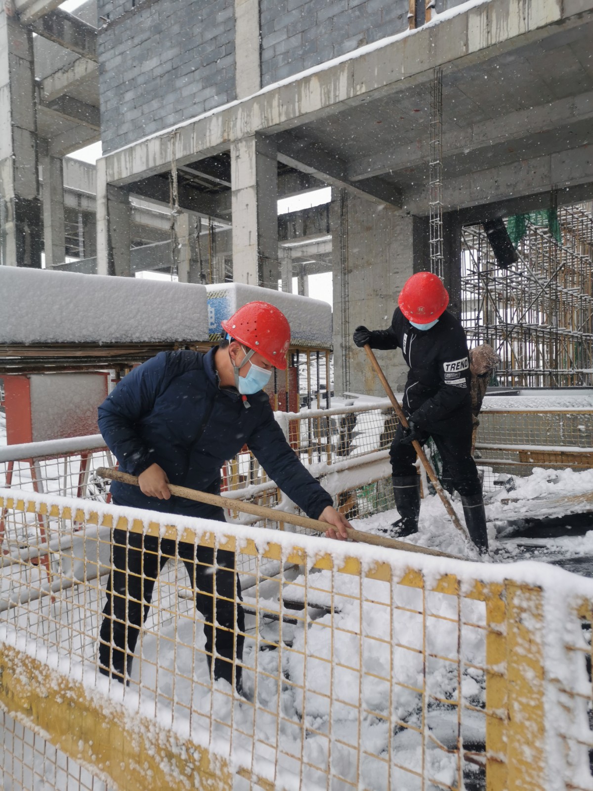项目部人员不畏严寒,干劲十足。大家挥舞着铁锹、扫把,相互配合团结协作,对项目办公区、工人生活区、工地现场和附近道路的积雪进行了清理,特别是清除了工人生活区的露天楼梯上的积雪和冰,为工人的出入提供了很大的方便,这一暖心行动得到了广大工人的一致好评和点赞。
