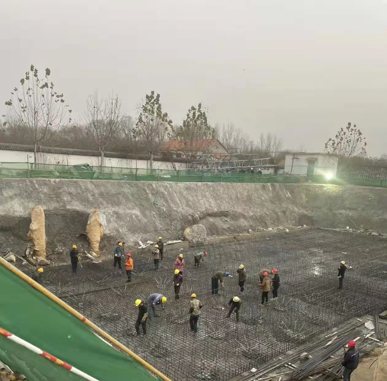 走进项目施工现场,工地一派热火朝天的景象。墙上拉起的“抓安全,保质量,抢进度”等宣传标语引人注目、使人奋进。塔吊、装载车、挖掘机等机械车辆在现场有条不紊地进行作业。到了晚上,项目施工现场灯火通明,机器轰鸣,工人们在探照灯的光线下紧张而有序地忙碌着。他们焊接钢筋,火花飞溅,技术娴熟,忙而不乱......。施工人员加班加点,不分昼夜与时间赛跑,在确保质量和安全的前提下,加速推进项目建设。项目部技术人员进一步优化施工方案,根据冬季施工要求对现场施工人员进行详细的技术交底。此外,项目部管理人员每天下午6点召开碰头会,讨论研究现场所遇到的施工难题,做到“今日事、今日毕”。