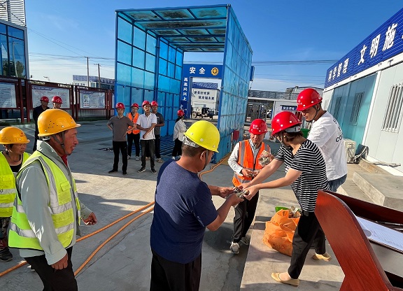 6月21日早上,石家庄铁路职业技术学院项目开展了“‘粽’情飘香 爱心传递”活动,项目部提前组织,精心安排,将备好的粽子发放给每一位项目部职工及现场施工人员,向奋斗在施工一线的劳动者们致以节日的问候,并叮嘱他们在施工过程中要注意施工安全,尤其是在如此炎热的夏季,一定要照顾好自己,切实落实好防暑降温工作,确保安全度夏。
