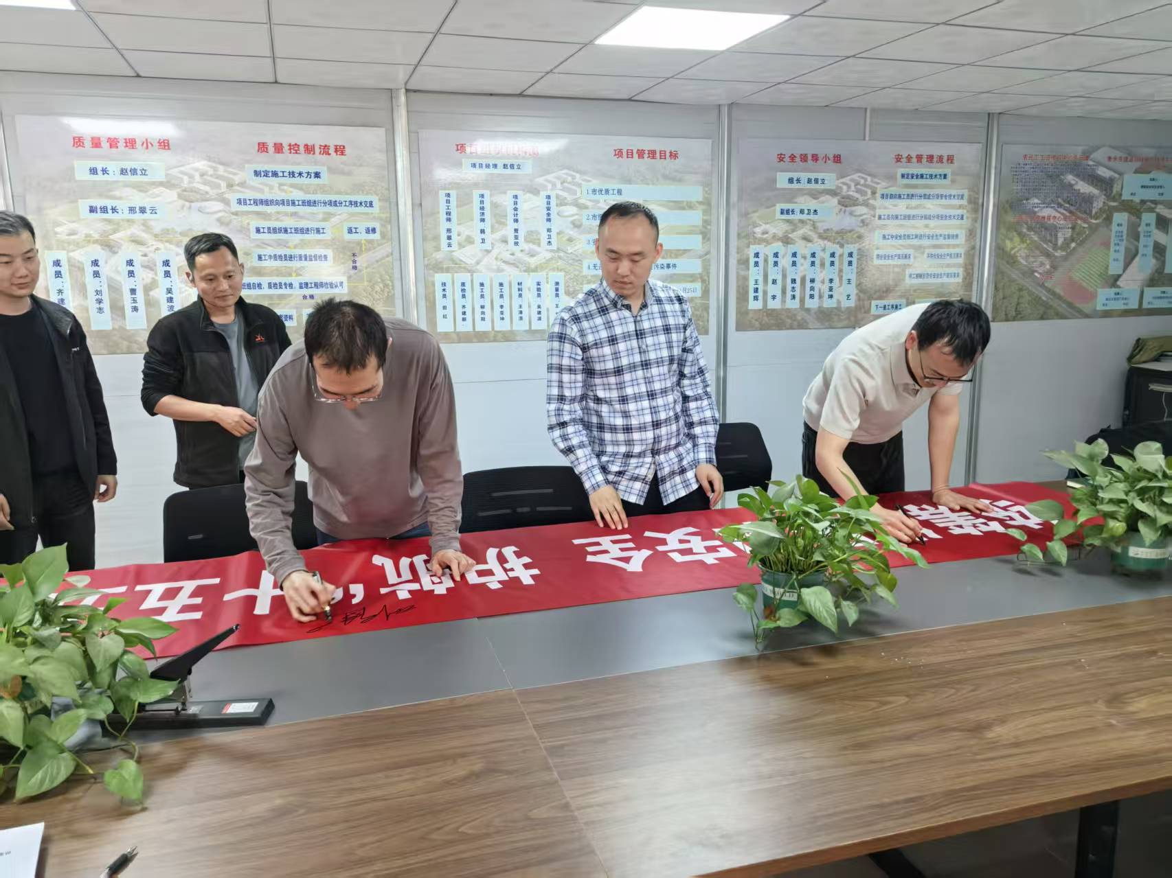 观看结束后,项目部举行“统筹发展和安全,护航十五五新征程”主题条幅签字活动。全体人员依次在主题条幅上郑重签下自己的名字,一笔一划都承载着大家维护国家安全、严守施工安全、践行责任担当的坚定决心。签字仪式简洁而庄重,不仅强化了全员国家安全意识,更凝聚起“人人讲安全、事事为安全、时时想安全、处处要安全”的思想共识,让安全理念融入施工建设的每一个环节。